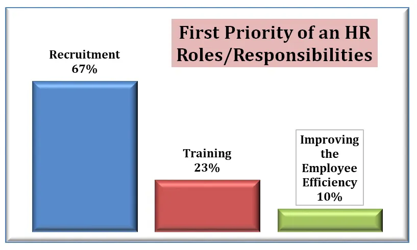 - First Priority of an HR: 67% of businessmen believe that HR’s first role is to Recruit Employees and build up the right team for the Organization while 23% has choose Staff Training and Only 10% has chosen the option of Improving the Employee Efficiency