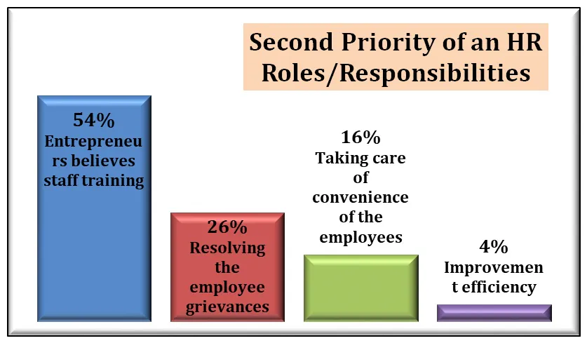 - Second Priority of an HR: 54% of Entrepreneurs believes staff training is the 2nd most important role while 26% Business owners believes, the second most priority is Resolving the employee grievances