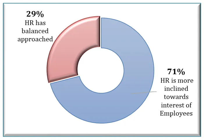 - According to 71% of business people, the HR department is more inclined about employees’ interests and less towards the company while HR’s important role is to maintain a balance between employees and the company.